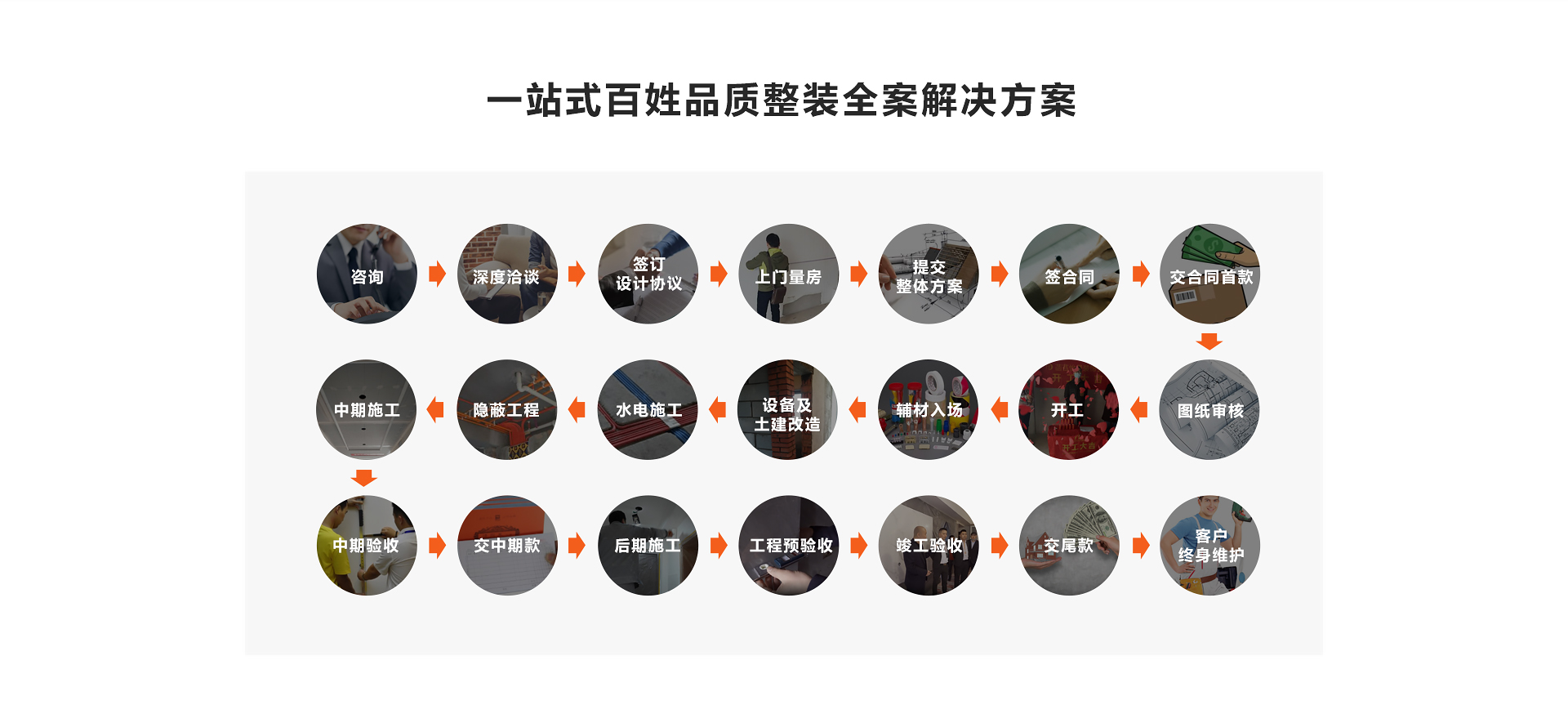 每個工作人員都需通過公司專業系統培訓后上崗,從設計、簽約、選材、施工到交付,服務全過程保障